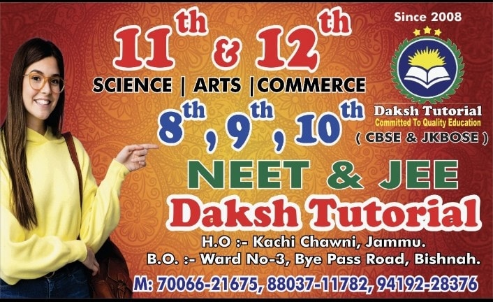 Daksh Coaching Classes, Jammu is regarded as one of the best coaching institutes in the city, offering highly cooperative and dedicated teachers committed to student success. Located conveniently near SP Smart School, the centre emphasizes quality education with a personalized approach. Students appreciate the focused tutorials and the institute’s reputation for nurturing a strong academic foundation, making it a preferred destination for learners seeking effective coaching in Jammu.