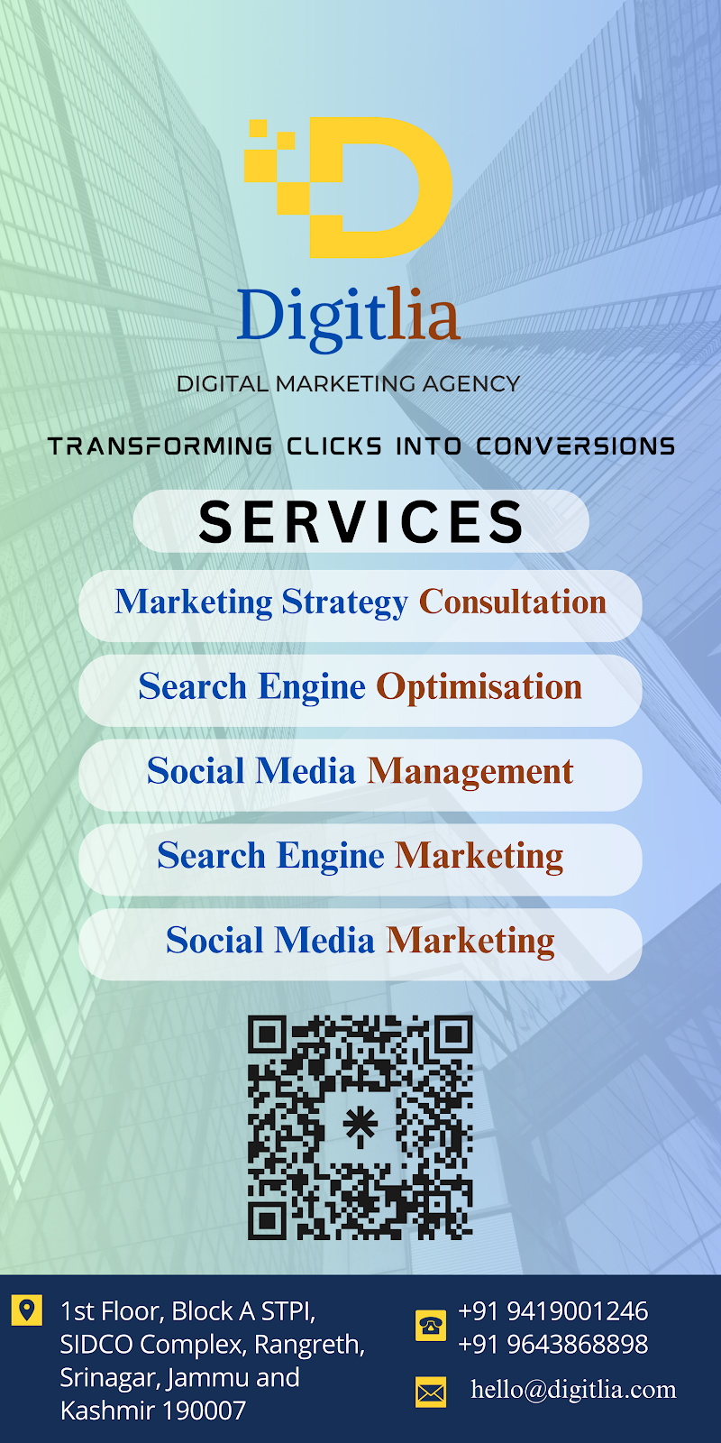 Located in Srinagar, Digitlia | Digital Marketing Consulting Agency has earned a reputation for excellence in SEO and social media marketing. Their experienced team crafts strategic content marketing plans with high-quality, keyword-rich materials that resonate with audiences and significantly increase website traffic. Known for their responsive support and commitment to client success, Digitlia offers personalized service that empowers businesses to thrive in a competitive digital environment. Their long-standing expertise and attentive approach make them a reliable partner for digital marketing growth.