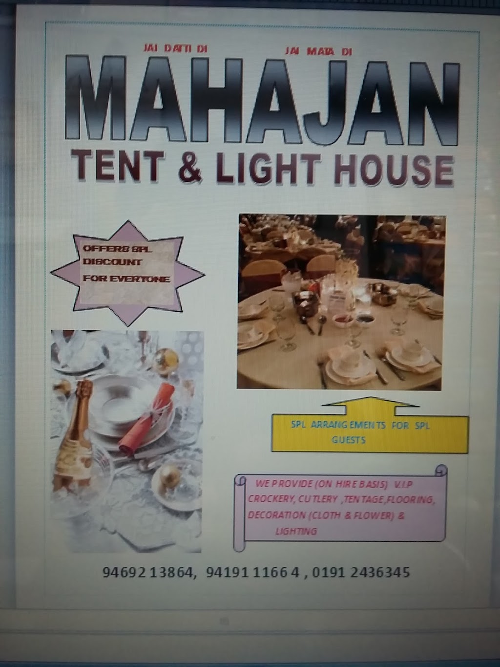 Mahajan Tent & Light House offers exceptional service and customer respect in the heart of Gandhi Nagar, Jammu. Clients commend the team for exceeding expectations and delivering more than promised, highlighting their dedication and professionalism. This establishment is ideal for those seeking reliable and courteous support for event setups, ensuring every detail is handled with care. If you want a stress-free experience with top-notch service, this is a go-to option in the region.